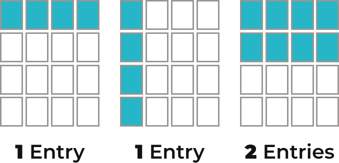 Fill up any horizontal or vertical row with those unique stickers from businesses to make your card eligible for a drawing at the end of the month. More Rows = More Entries. See Entry Examples Below.